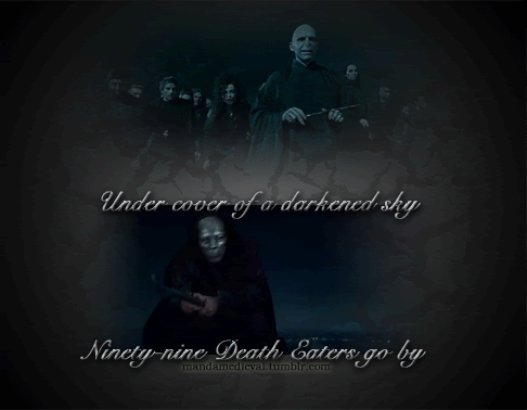 Earlier this evening I decided to make something on Photoshop. I decided I would make a Harry Potter image based on a wizard rock song. First, I tried "Lullaby" by The Remus Lupins. But you try finding decent pictures of Remus and Tonks. Fuck that. Then I think I was going to try "Don't Wanna Be A Death Eater" by The Brothers Black. Another fail. And then FINALLY, I settled on Draco and the Malfoys' "99 Death Eaters." Score.